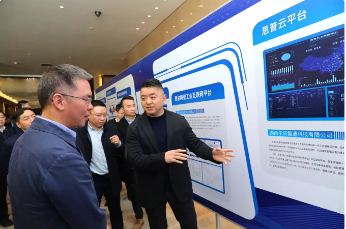 • kdpay钱包智通总经理傅帝向湖南省工业和信息化厅党组书记、厅长曹慧泉介绍思普云在工业领域应用情况